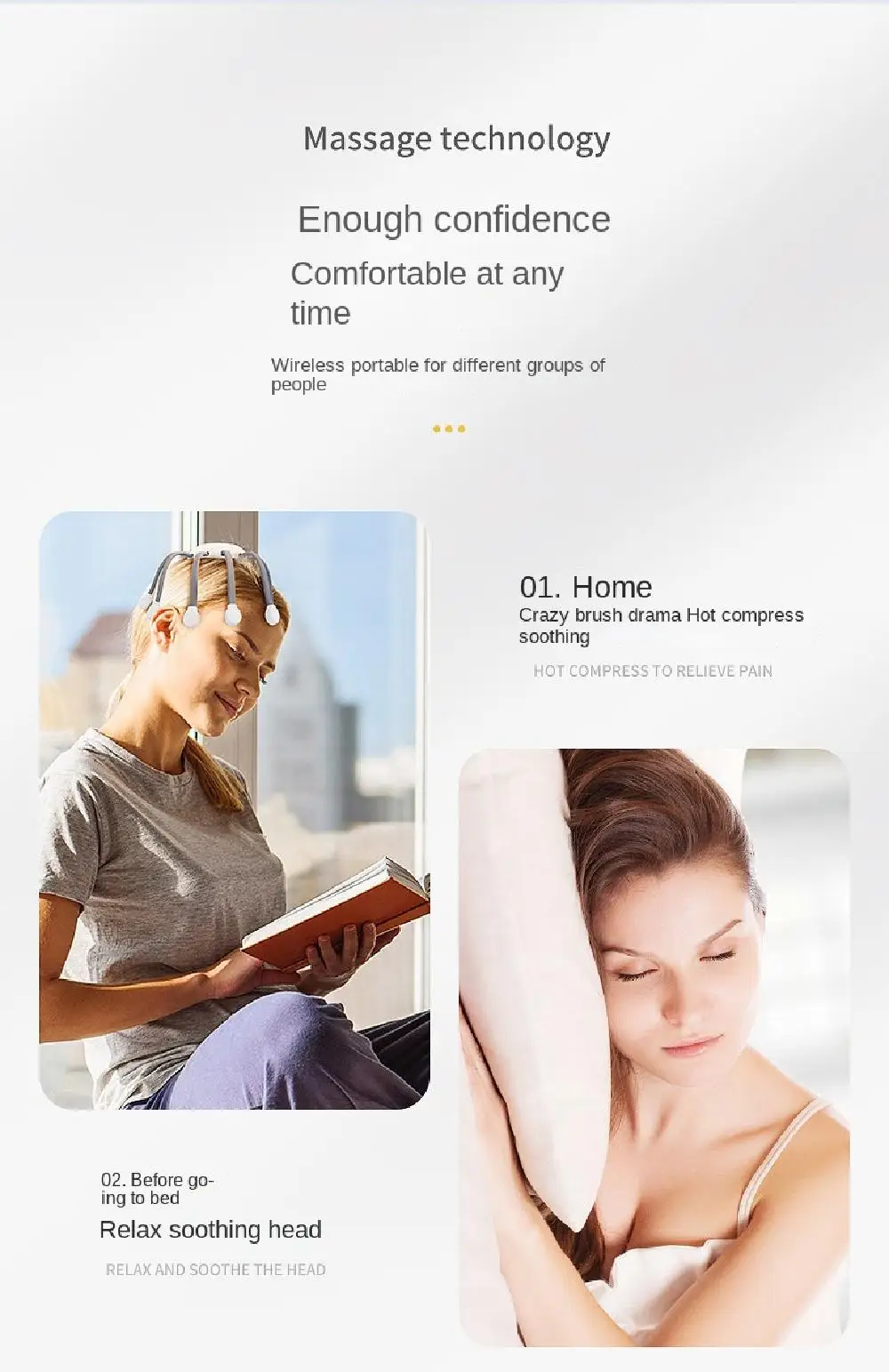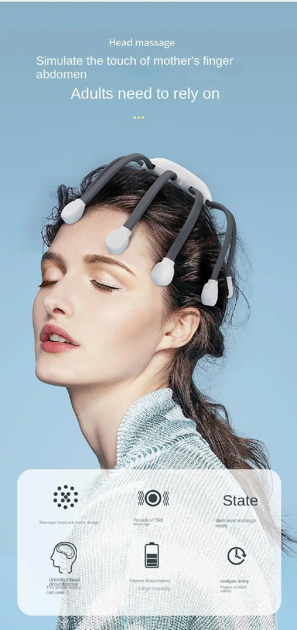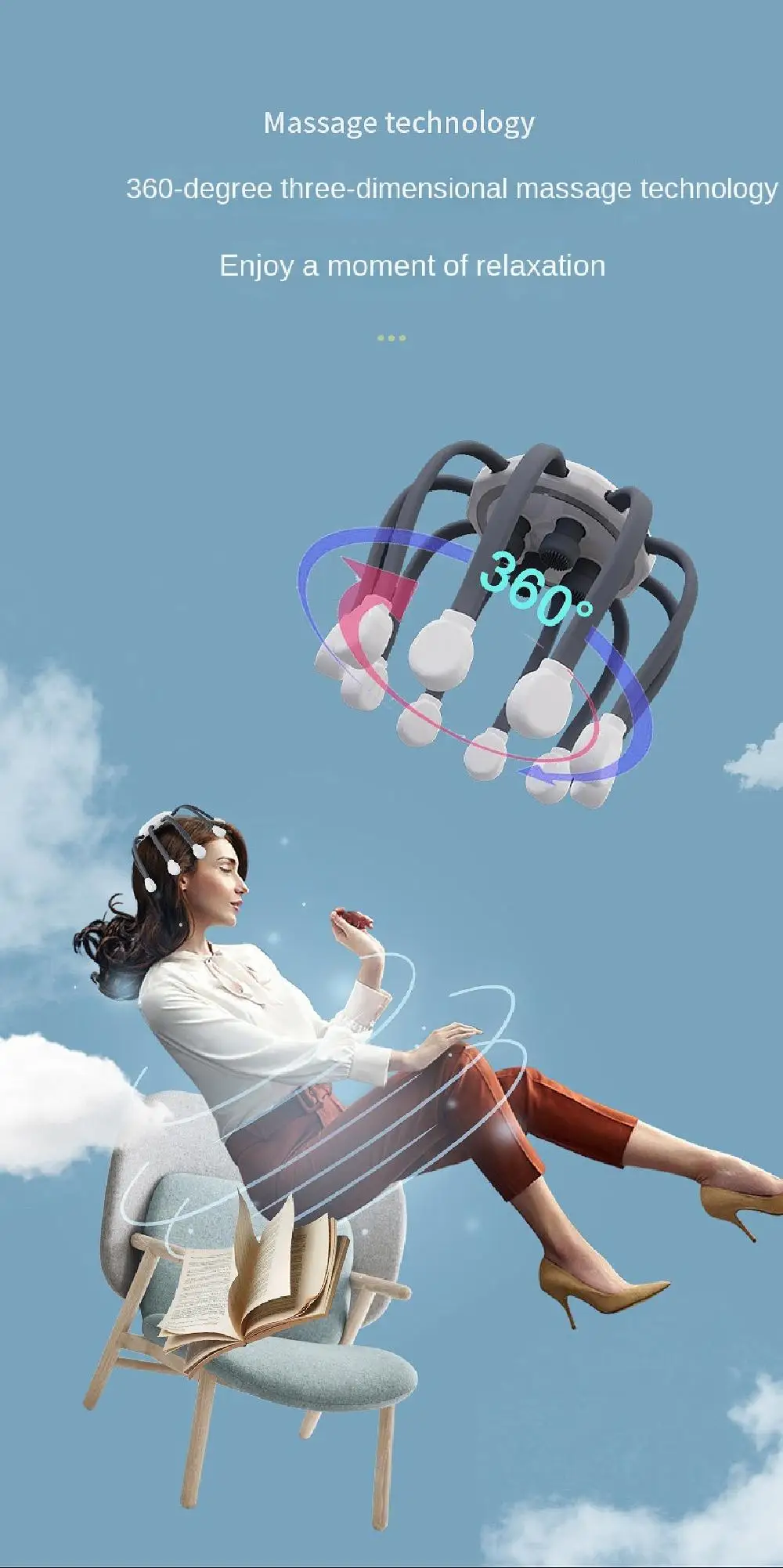 The OctoRelief™ Electric Head Massager is designed to melt away tension with its unique eight-claw design, simulating the gentle touch of human fingers for deep relaxation anytime, anywhere.